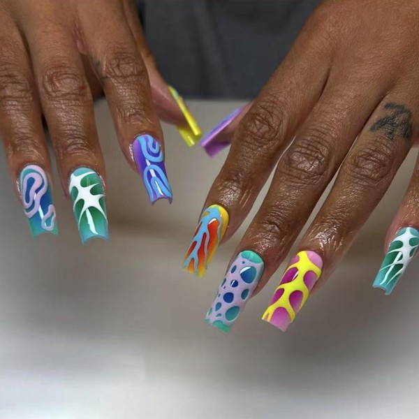 - Unique Design: Colorful false nails are printed with gradient lines patterns, creating more joyful atmosphere, exquisite and beautiful, achieving the nice decorative effect, which will make you more attractive and eye catching