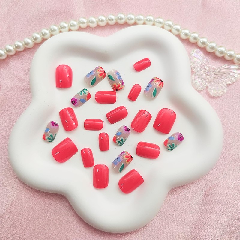 4. Choose short press on nails of the right size, stick the acrylic nails on the jelly glue and press for about 25 seconds until it sticks firmly