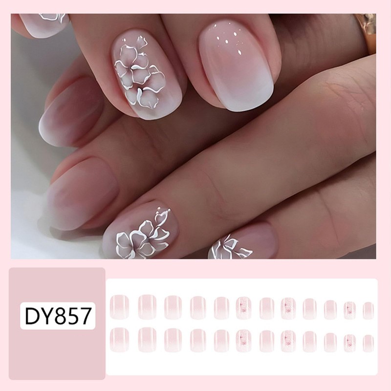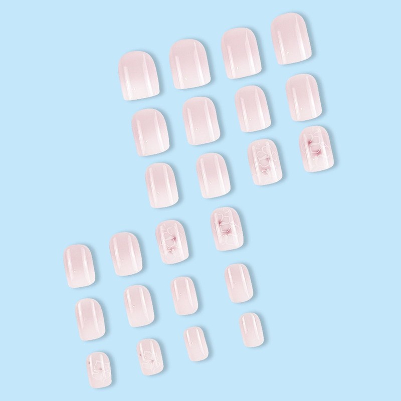 - With 24 square press on nails short presses per box, a sheet of jelly glue, 1 cuticle stick, 1 double-sided nail file and cleaning pad, this set contains all the tools you need to sharpen your nails.