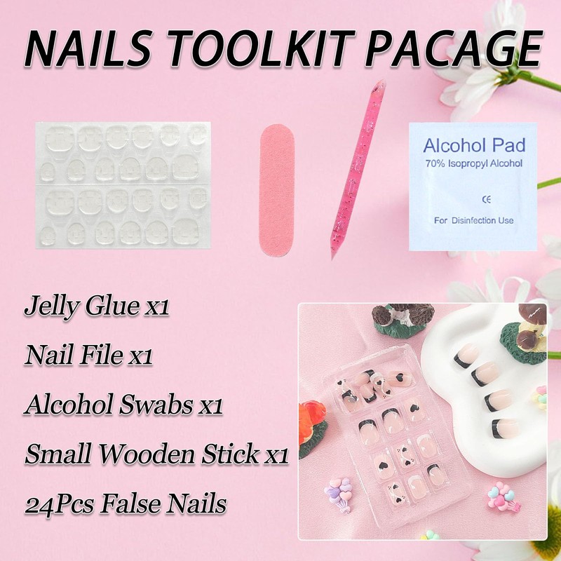 - Product Packaging: You will get 24 pieces of Valentines press on nails kit, 1 pack of alcohol cotton, 1 mini file, 1 nail stick, 24 jelly glue. Glitter is easy to fall off, please apply an extra layer of protective glue,Does not contain glue.