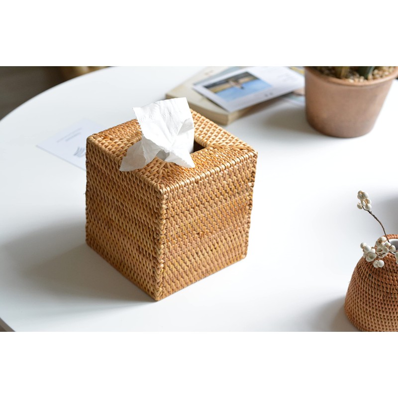 - 【Material】 Made with durable Eco-friendly Rattan, add a dash of style to your living space with this tissue box cover.