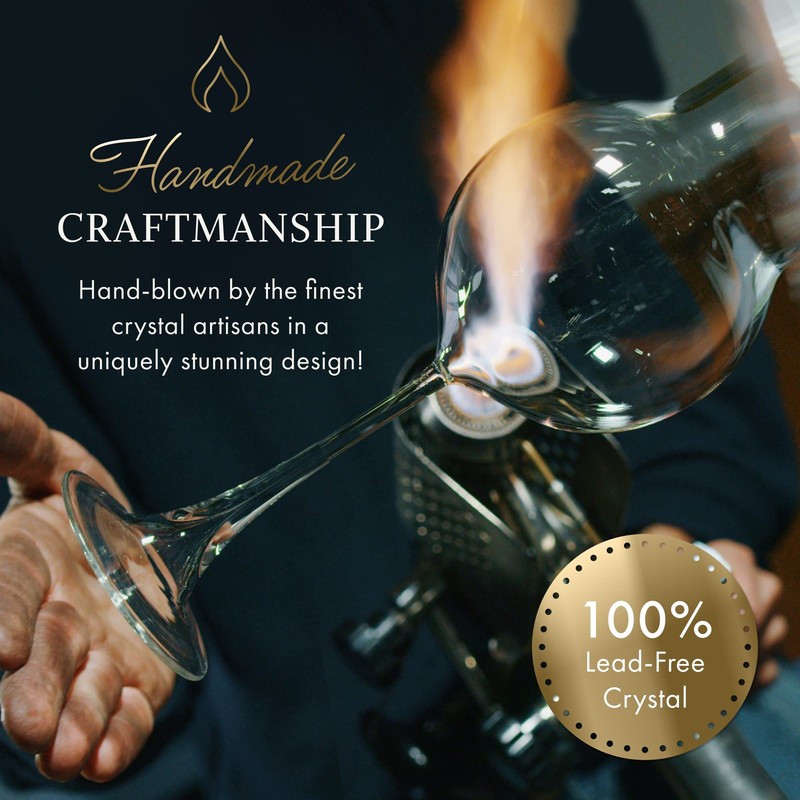 - ✔ Handmade Craftsmanship – Each glass is masterfully shaped and hand blown by artisans using traditional methods. The wide rim is carefully cut and polished to direct the wine to the center of the tongue, creating a harmony of fruit, acidity and tannin flavors. The result is a unique work of art – a delightful experience best shared with fine wine and good company.