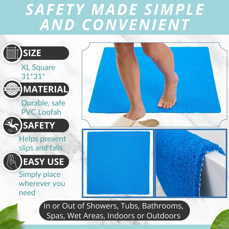 Square Shower Mat - Non Slip Shower Mats for Inside Shower - Extra Large 31x31 Shower Floor Mat Non Slip - Square Bath Mat for Shower - Secure Anti Slip Loofah Shower Bath Mat (31x31 Blue)