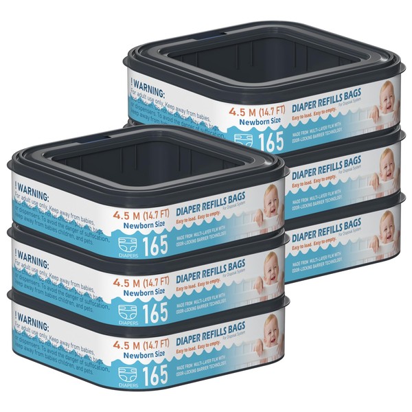 Square Starter Refills Disposal Bags Refill Compatible with Diaper Genie Compact and Select Pails (Not Fit Classic Version Pails), Hold Up to 165 Newborn-Sized Diapers Per Refill, Pack of 6