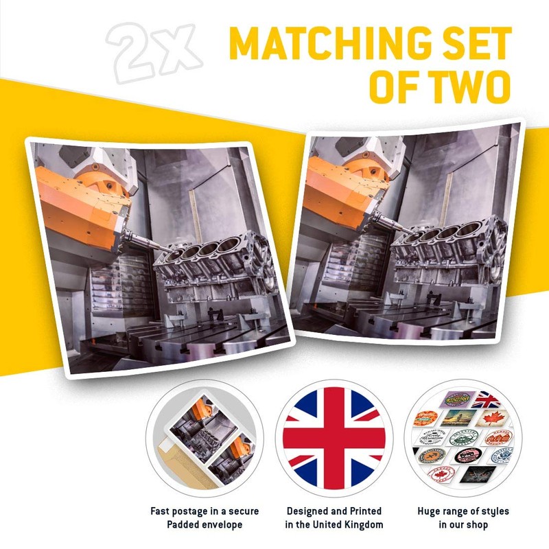 Square Stickers (Set of 2) 7.5cm - Metalworking Machine CNC Milling #16136