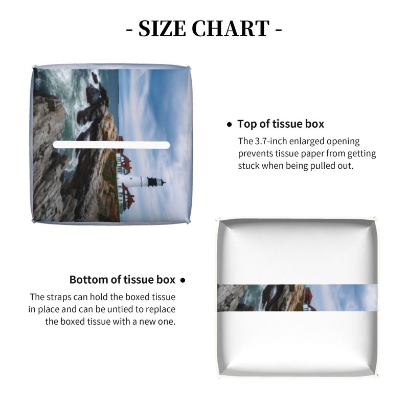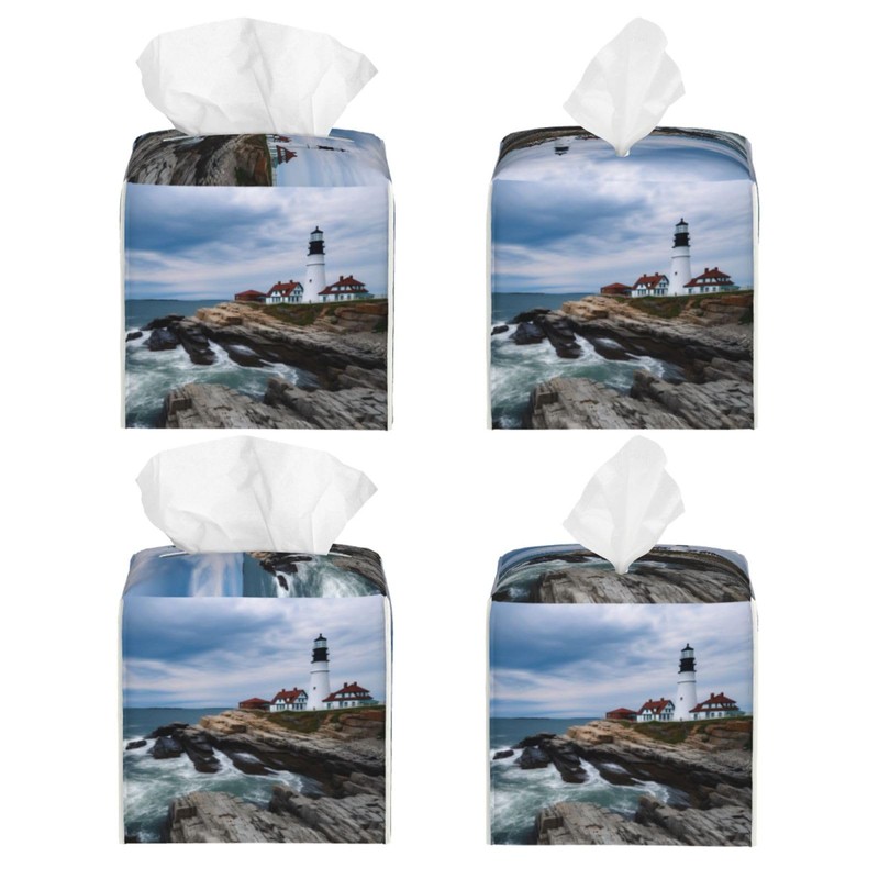 Square Tissue Boxes 5.2"x5.2"x5.2", Lighthouse Beach Sky Tissue Holder Decor for Bathroom/Vanity Countertop/Home/Car/Office