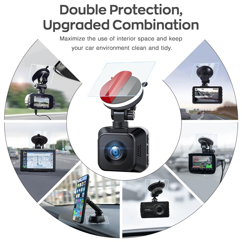 • ✅【Reliable Double-Sided Tape】The included 2pcs double-sided round tape provides a reliable and long-lasting hold on any flat surface, ensuring your dash cam stays securely in place in bumpy roads. Super strong sticky double sided adhesive.Stickiness is 60% stronger than others, High-strength. let you quickly and easily create a long-lasting bond.Heat resistant(can withstand up to 200°F heat in summer).Cold resistant (can withstand up to -158 °F )and waterproof.