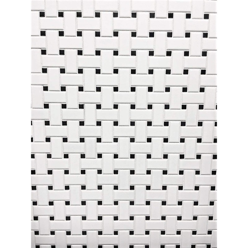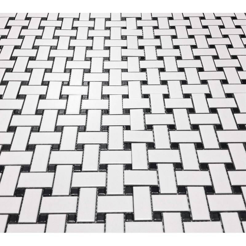 Squarefeet Depot 1x2 Matte Finish White and Black Basketweave Porcelain Mosaic Walls and Floors