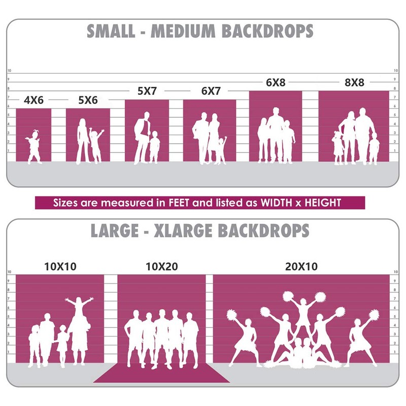 We offer backdrops in dozens of sizes, ranging from 2ft wide all the way to 20ft wide. Determining which size you need can sometimes be difficult, especially if you're new to backdrops. Please refer to the size chart to select the most suitable tablecloth.