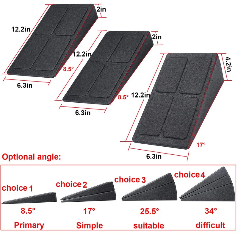 - Wide application: The slant boards are suitable for home, office, gym and outdoor park to stretch and strengthen your feet, ankles, ankles , calves, etc. It can be used as calf stretcher, calf raise block, squat wedge, heel foot ankle knee stretching platform, leg extender, yoga stretch and push-up board. It can give you better balance, improve your flexibility, muscle strength and stamina, prevent injury.