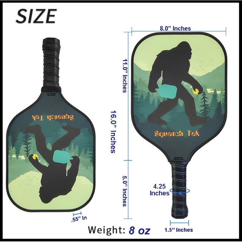 • Dominate your opponents with our Squatch Tek Pickleball Paddle. By wielding this lightweight, over-sized Pickleball Paddle infused with a lightweight PP honeycomb core melded with a durable fiberglass face, you will bewilder your opponents with uncanny command of the court