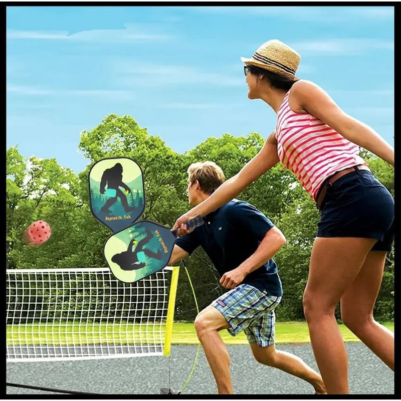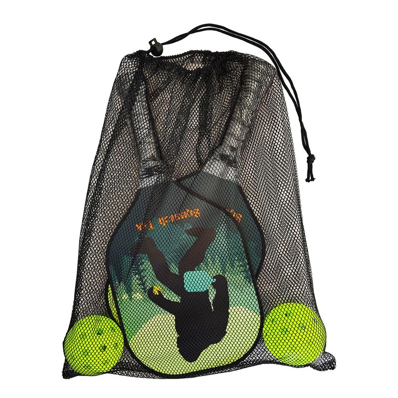 • Set Includes 2 Squatch Tek Paddles, 2 Balls, and a Mesh Paddle Bag: You'll have all you need to hit the pickleball courts with your partner in wear-me-down fashion with this convenient pickleball paddle set. With 2 impressive Squatch Tek Paddles, two 40 hole pickleballs that provide more spin and control, and a convenient Mesh Carry Bag that holds extra gear, or can be used as a general gear bag