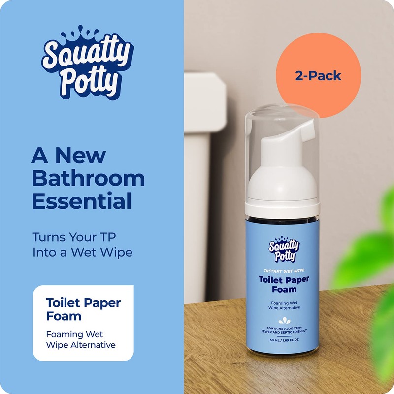 Squatty Potty Toilet Tissue Paper Foam Instant Wet Wipe Alternative - 2 Pack, 50 ml, 1.69 Fl Oz