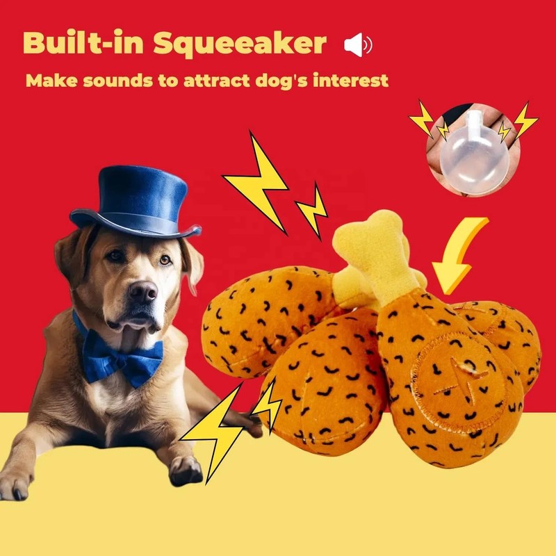 - Built-in Squeakers for Extra Fun Each chicken leg contains a squeaker that makes playtime more exciting, grabbing your dog's attention and encouraging interactive play.
