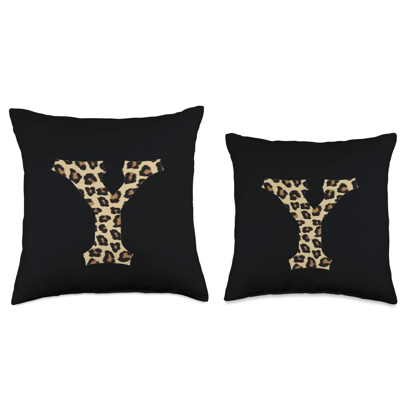 SqueakyRicardo Animal Print Leopard Cheetah Print Letter Y Initial Rustic Monogram Gift Throw Pillow, 18x18, Multicolor