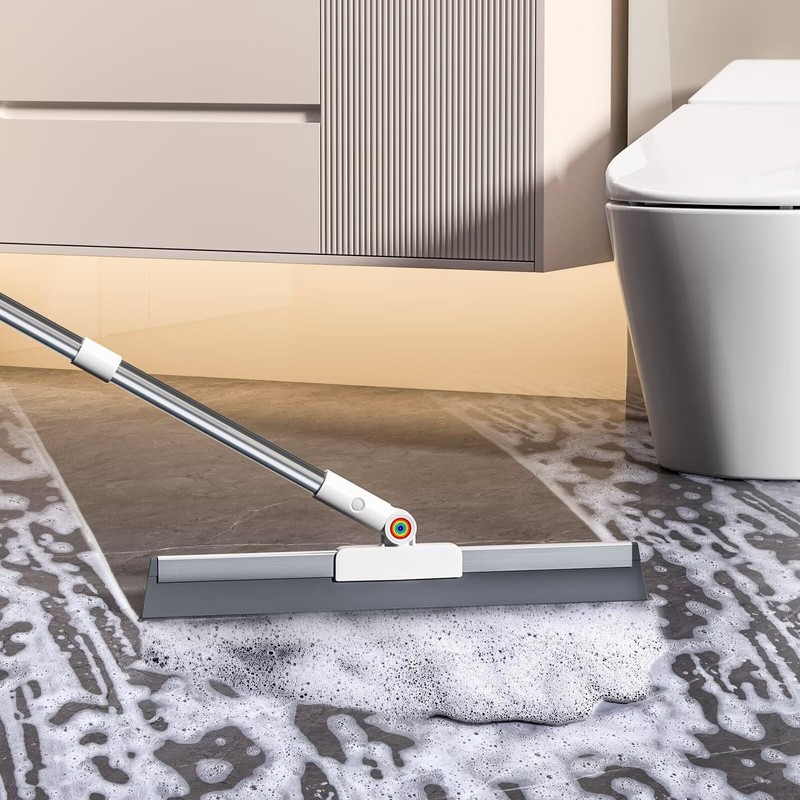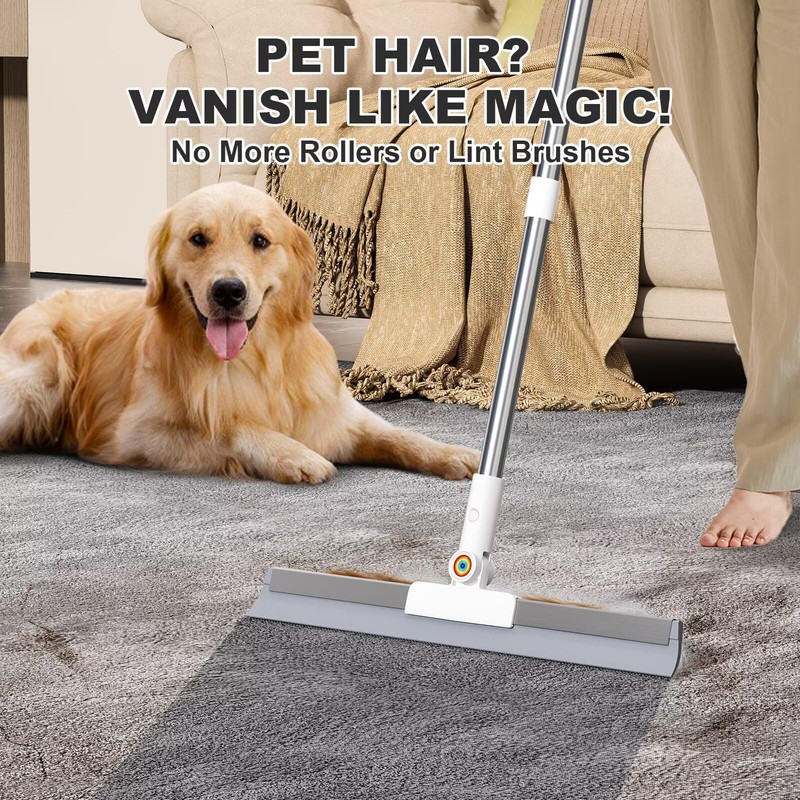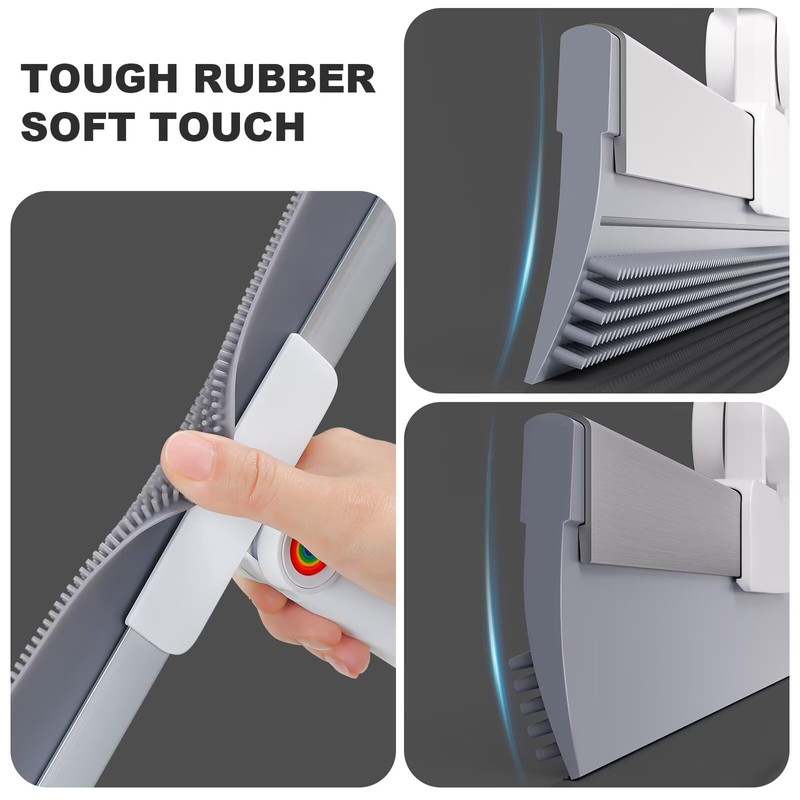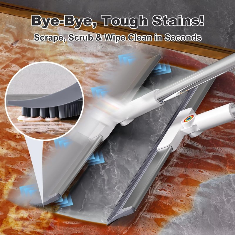 - 【Dual-Sided Head with 2-in-1 Cleaning Power】 This squeegee broom for floor features extra-long rubber scrubbing teeth for dried stains and a flat edge for water and dust. Ideal as a pet hair broom for carpet, floor wiper, and stain remover—perfect for all-in-one cleaning.