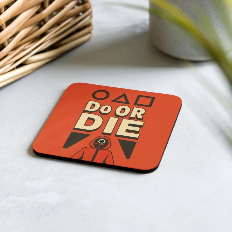 Bring K-drama vibes to your home or office with this Squid Game–inspired cork-back coaster, featuring the bold “Do or Die” red guard design. Ideal for fans of dystopian thrillers and Player 456, this durable and stylish coaster protects your surfaces while showcasing your love for the cult-hit series.