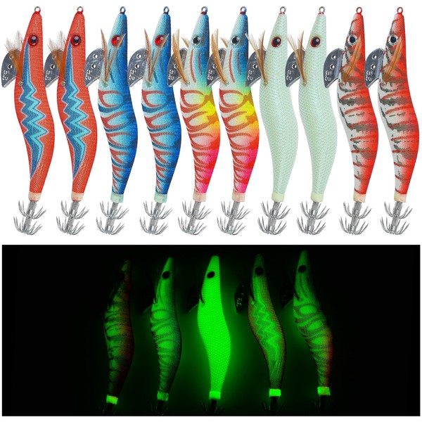 • LUMINOUS DESIGN. Luminous tail glow in dark to attract more fishes. This fishing lure is perfect for catching fish like sleeve-fish, squid, cuttlefish and octopus in freshwater or saltwater.