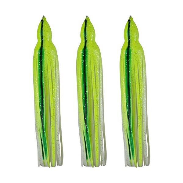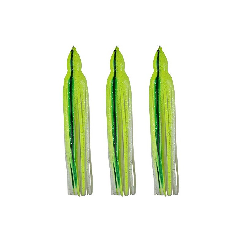 Squid Skirts 8.5" Inch No Eyes - Glow in Dark Yellow & White with Green Stripe