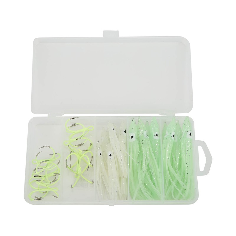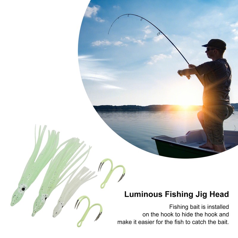 1、Durable Material: Hook is made of stainless steel, strong, durable and wear resistance. 2、Exquisite Workmanship: Beautiful appearance design, giving you great user experience. 3、Light and Portable: Light in weight, easy to carry around, will not increase burden, can bring you more convenience. 4、With Bait: Fishing bait is installed on the hook to hide the hook and make it easier for the fish to catch the bait. 5、Luminous Body: Luminous body can emit fluorescence to lure fish in the dark bottom, increasing your fishing success rate.