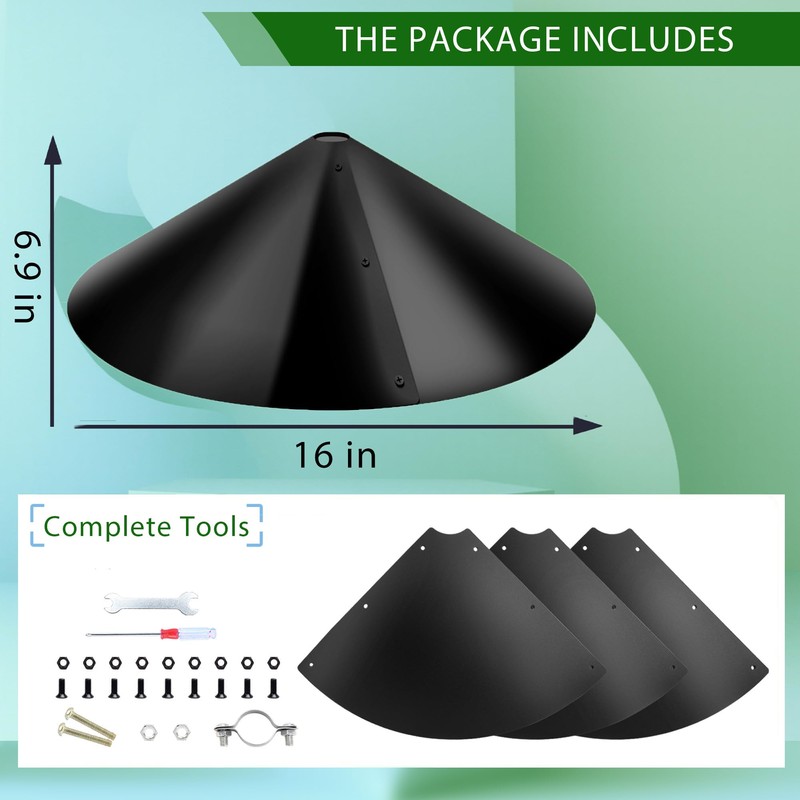 - 【Easy Assembly】The 16-inch wrap-around squirrel stopper is designed with three take-apart baffles,just a few simple steps to complete the installation.