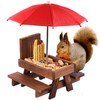 Squirrel Feeder Picnic Table with Umbrella, Wooden Squirrel Feeders for Outside with Corn Cobs, Cute Chipmunk Feeder with Solid Structure for Squirrel Gift (red)