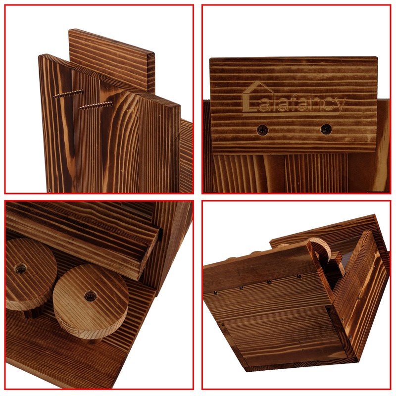 Squirrel Feeder Table Nut Bar, Lalafancy Carbonized Squirrel Feeders for Outside Tree Funny Wooden Feeding Station for Garden Backyard, Stable Squirrels Bar Stools
