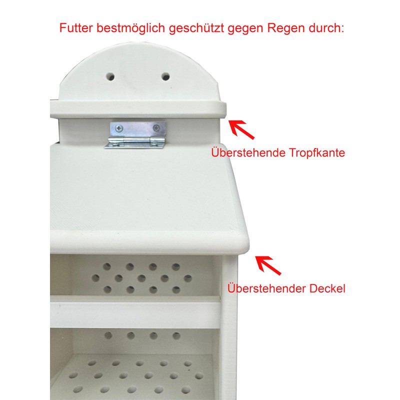 - Feeding station measures 12 x 23 x 30 cm (length x width x height)