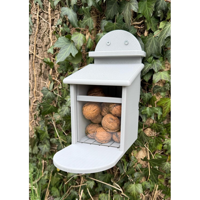 Squirrel Feeding Box - Squirrel Feeding Station - Weatherproof Plastic - Automatic Feeder for Squirrels (Grey)