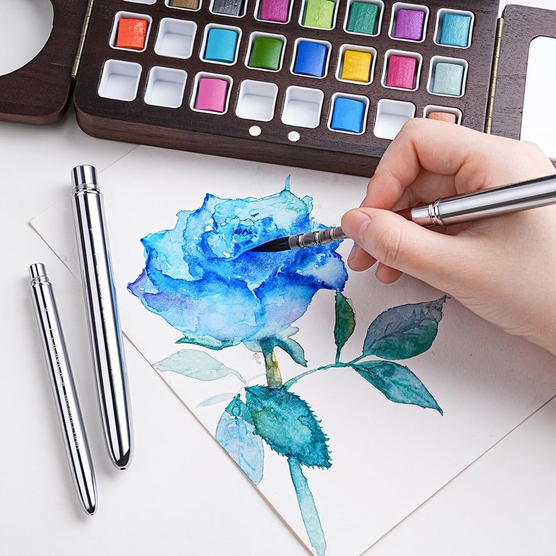 - Designed for Travel Watercolour Painting - Our Upgraded Round Quill Fine Tip Mop Brushes can paint from long, thin lines to large areas with ease. Despite their compact size, travel watercolour brushes are capable of a wide range of strokes and effects, making painting leaves, waves, flower petals easy with just a few strokes.