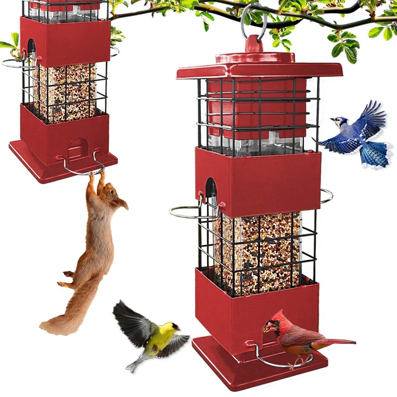 Squirrel Proof Bird Feeder, Metal Bird Feeders for Outdoors Hanging, 2.5lb Gravity Protection Squirrel Proof Wild Birds Seed Feeders for Finch Cardinal Blue Jay Outside (Red)