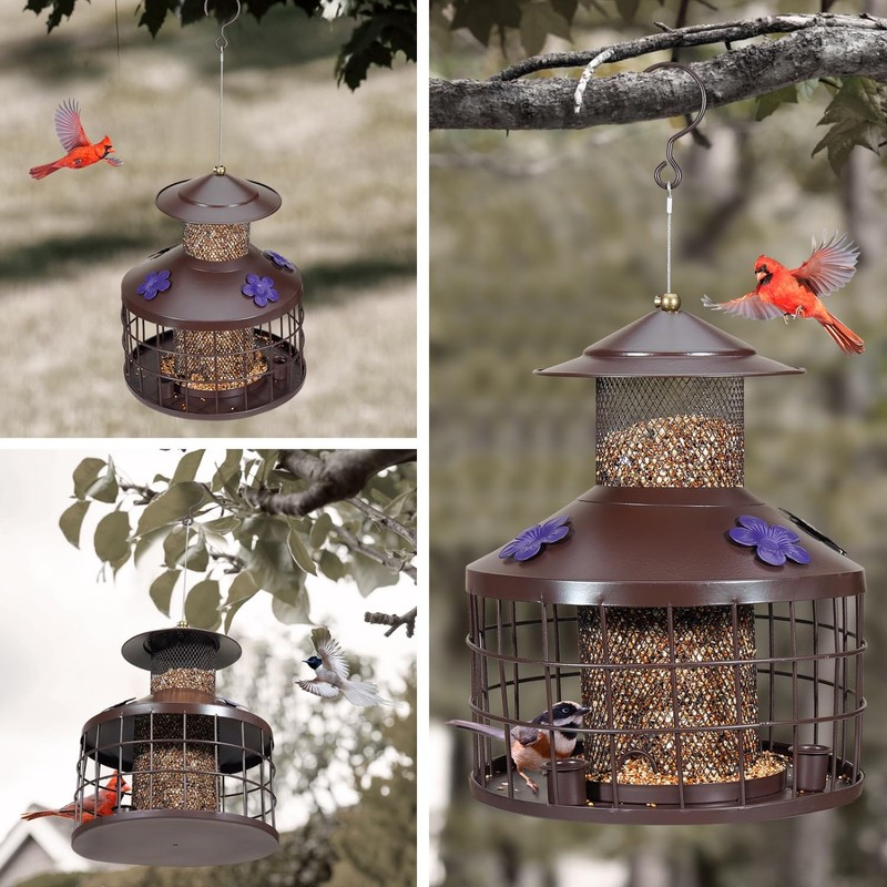 - SQUIRREL-PROOF METAL CAGE – Reinforced steel mesh blocks squirrels and large birds, while allowing small birds like finches and sparrows to feed safely and comfortably