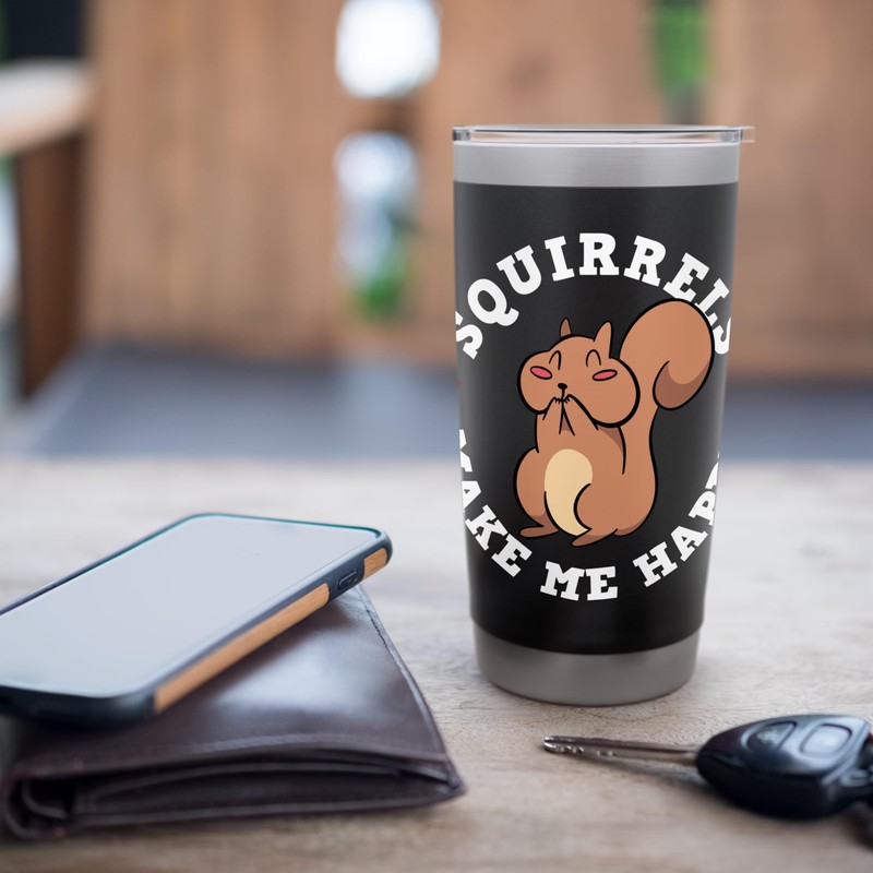 Squirrels Make Me Happy Cute Animal Design Stainless Steel Insulated Tumbler