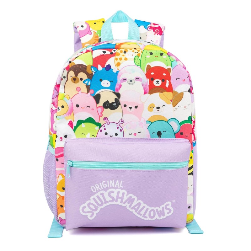 • ANIMAL PLUSHIE SQUISHMALLOWS CHARACTERS - The pastel blue and pink backpack set features all of their favourite animal plushies including the unicorn, cow, sloth and more. It is the perfect Squishmallows gift for birthdays, Christmas and back-to-school treats.