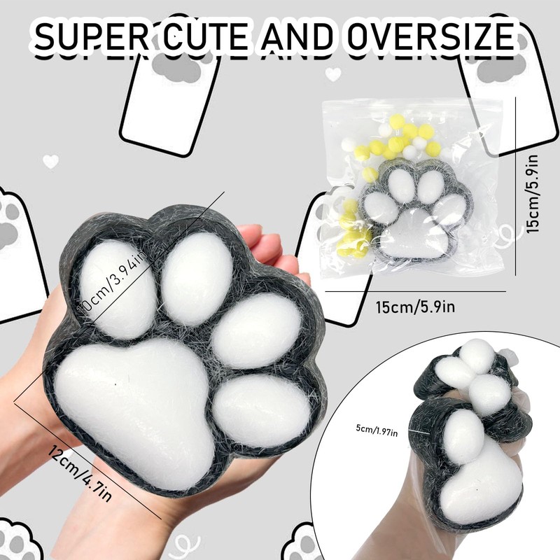 - 【Set Contents】 squishy consists of 1 cat paw squeezing toy with short flocked hair on the surface and several small hair balls inside. Squishy toys come in extra-large sizes for twice the size and twice the fun