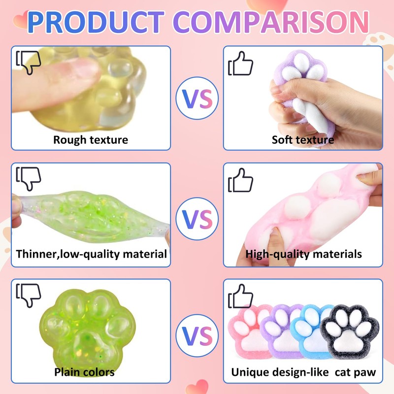 - A must for stress relief: Our squeeze fidget toy features a unique cat paw shape design that helps you relax and relieve stress during demanding work or learning. Perfect for anyone looking for a creative solution to stress management!
