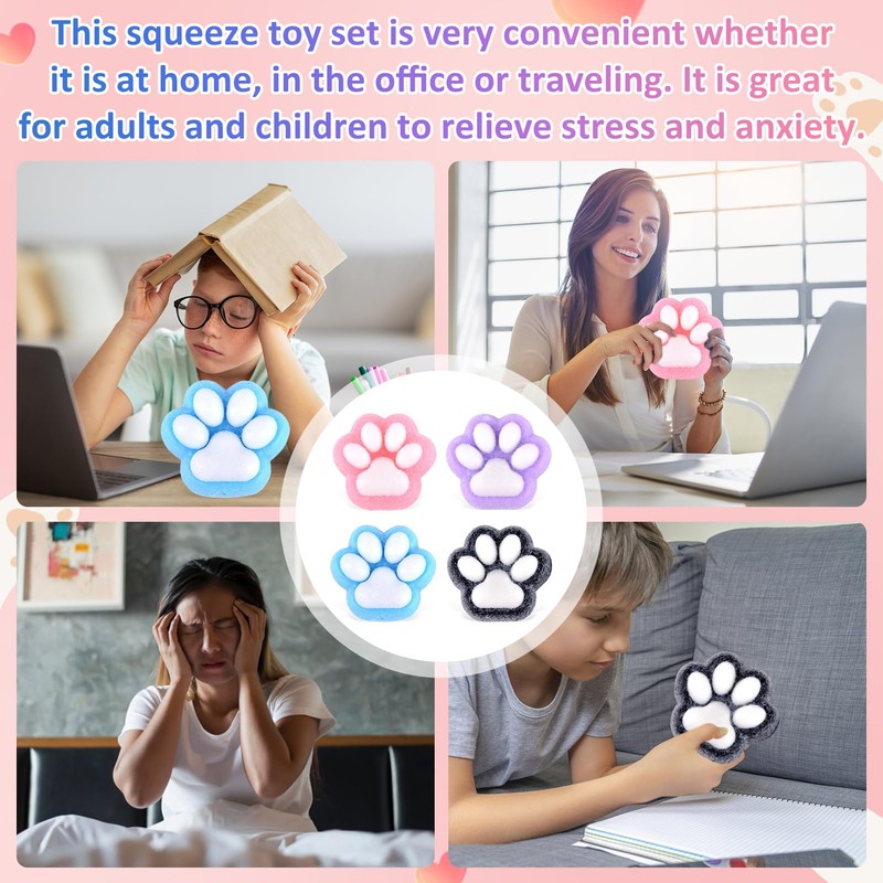 - Cat paw squeeze toy: you will receive a soft set of 4 squishy cat paws in beautiful colours. Our cat paw squeeze toy has a cat paw shape that is suitable for teenagers, children and adults to play.