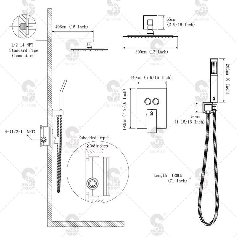 - Confident Installation: The SR SUN RISE Shower System is cUPC certified and compliant with the ASME A112.18.1-2018/CSA B125.1-18 standard, designed for use with standard 1/2" U.S. plumbing connections, and approved by the California Energy Commission. Flow Rate is 1.75 Gallons Per Minute (6.6L/min). You can rest assured that your contractor or plumber won't reject this shower system set.