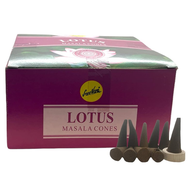 Sreevani Natural Masala Incense Cones and Holder Bundle, 120 Cones Total, Lotus