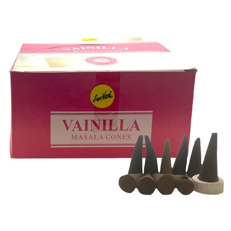 Sreevani Natural Masala Incense Cones and Holder Bundle, 120 Cones Total, Vanilla