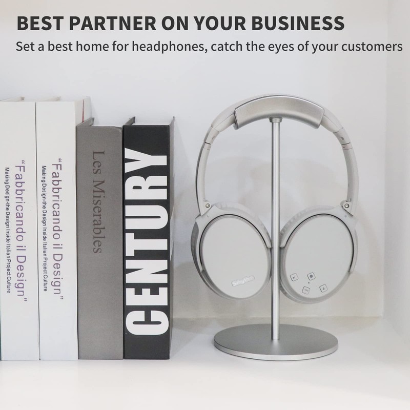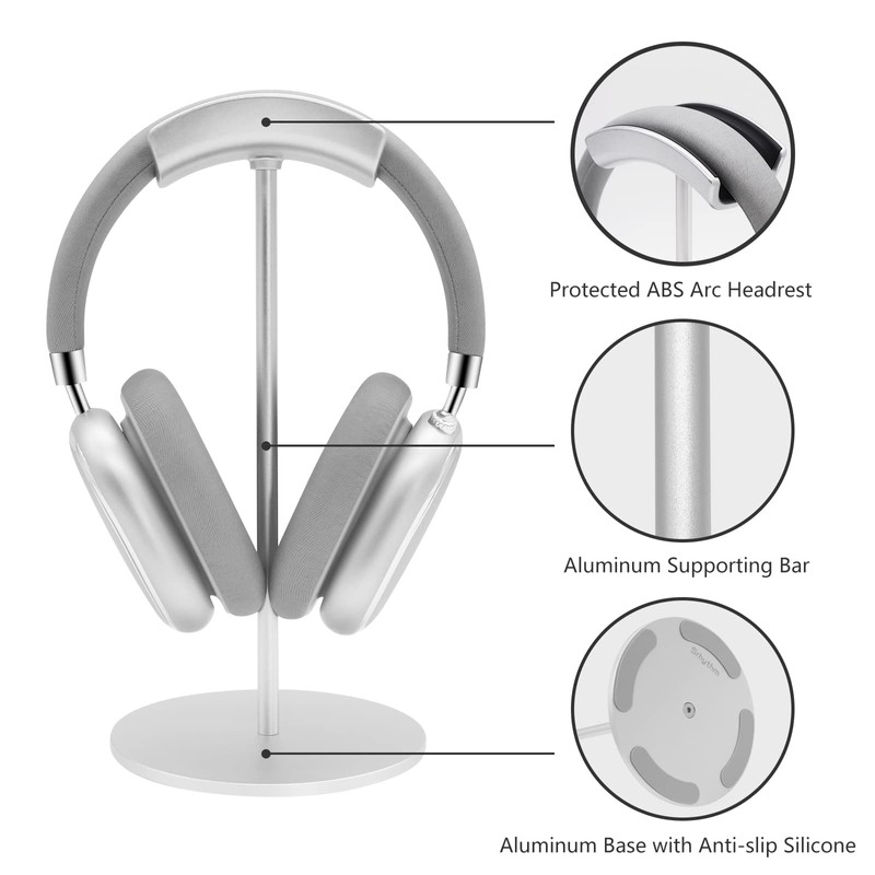 - Unique Sturdy Metal Design and Flawless Build Quality: Enhanced heavier base of Srhythm headphone stand to be more stable.Graceful and clear outline for decoration when display in your bookshelf,table,or showcase etc.Smooth appearance for better protective of your beloved headphones.