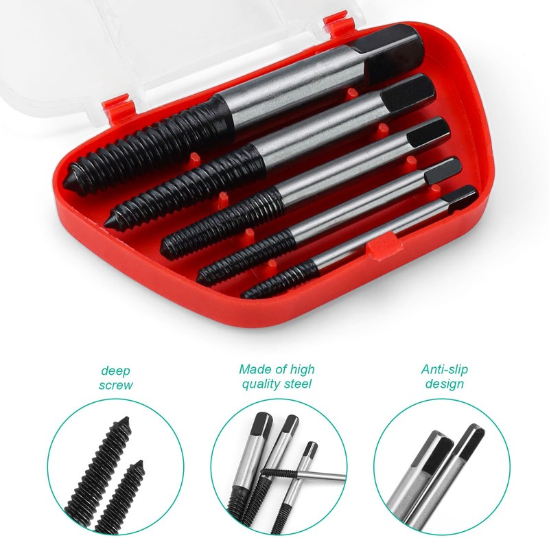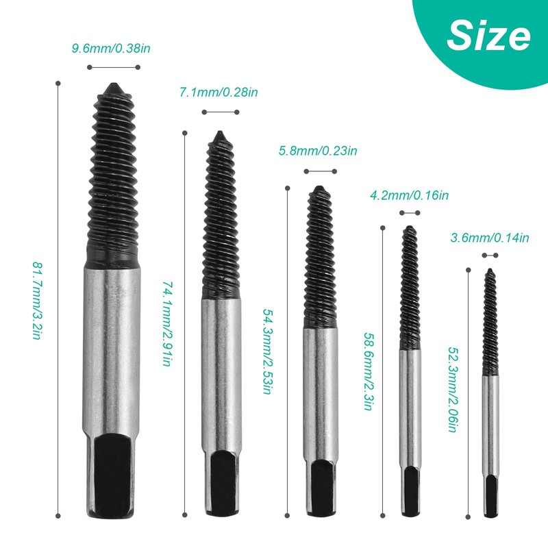 The screw extractor set is a versatile tool set for all DIY enthusiasts and crafters. It is perfect for easily removing damaged screws and bolts. This kit is suitable for 1/8 - 0.7 inch (M3-M18) screws or pipes.