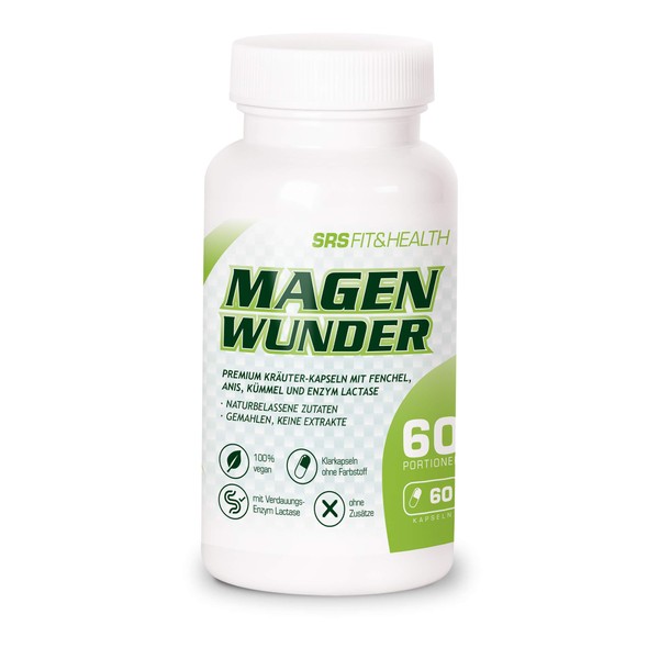SRS Fit&Health - Gastric Miracle, 60 Capsules, Vegan Herbal Capsules with Fennel, Anise and Cumin, as well as Special Digestive Enzyme Lactase, No Additives, Small Capsules, German Premium Quality