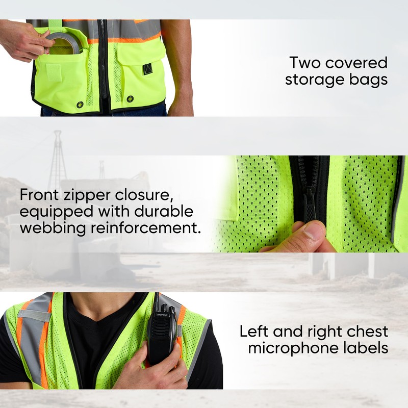 - Material: security vest adopts high-density polyester fiber (polyester) fabric. class 2 safety vest uses an ultra-thin mesh backing, which is lightweight, breathable, wear-resistant and tear-resistant.