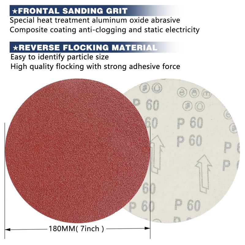 - ➤TOTAL 50PCS: 10pcs each of 40/60/80/120/240 grit sanding disc 180mm sandpaper pads, 5 most common grit sandpaper set from rough to fine to satisfy your general polishing requirements