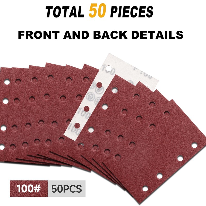 - Total 50 pieces: you will receive 50 rectangular sandpaper with grain of 100, which is enough to meet your general sanding and replacement requirements. (Note: the lower the grit, the coarser the sandpaper).