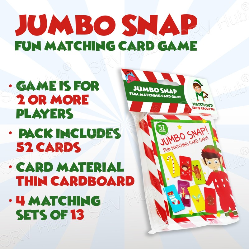 - ✅ PACKAGE INCLUDES: Customers will get 52 Jumbo Snap Cards. All Xmas jumbo elf playing cards include different pictures. Fun activity for the whole family on Christmas time.
