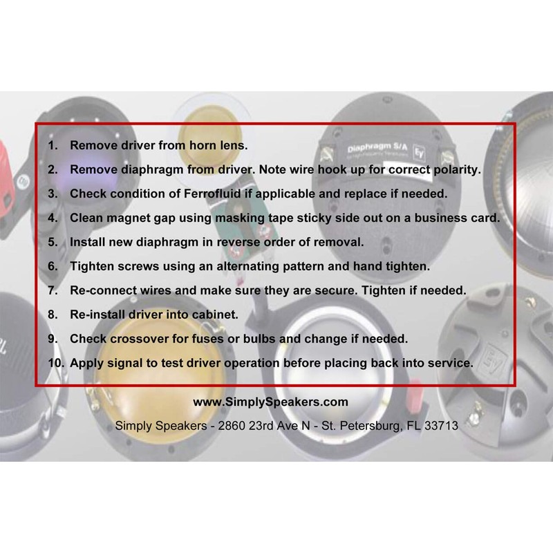 SS Audio Diaphragm 2-Pack for Electro Voice Speaker Horns, DH3, DH2010A, D-DH3, and many others