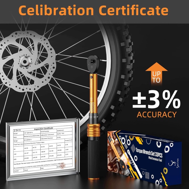 - High Accuracy Calibration - Equipped with an calibration certificate according to ISO6789-1, GB/T15729, and ASME B107.300 standards, the 1/4 torque wrench inch pounds provides an accuracy of ยฑ3%.