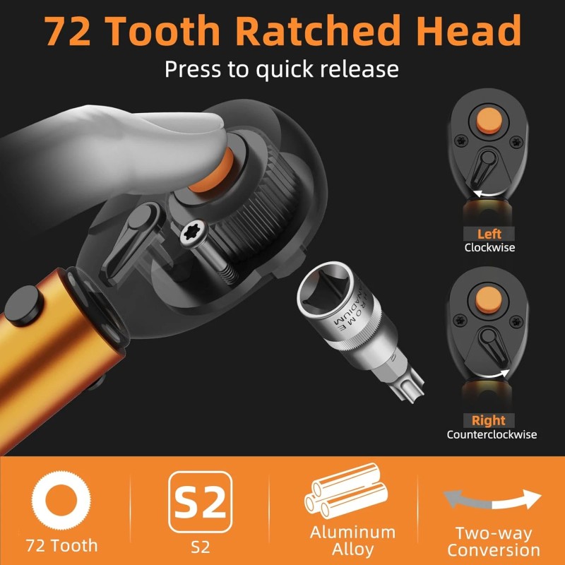 - Robust & Durable - Constructed with a high-quality aviation aluminum shaft, 40CR, 42CRMO, and a durable steel spring, the wrench is fatigue-resistant, enhancing both usage frequency and precision while extending its service life.